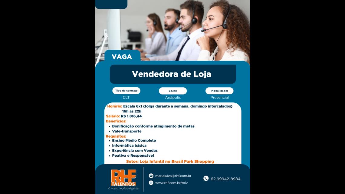 Estamos em busca de uma Vendedora de Loja para trabalhar na em Anápolis.